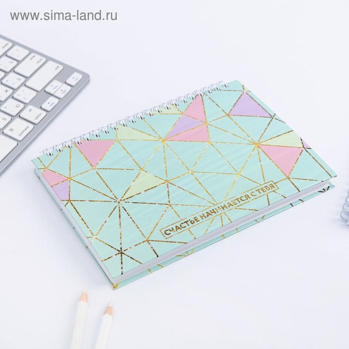 Скетчбук в твердой обложке на гребне «Счастье начинается с тебя» А5, 80 л, 100 г/м