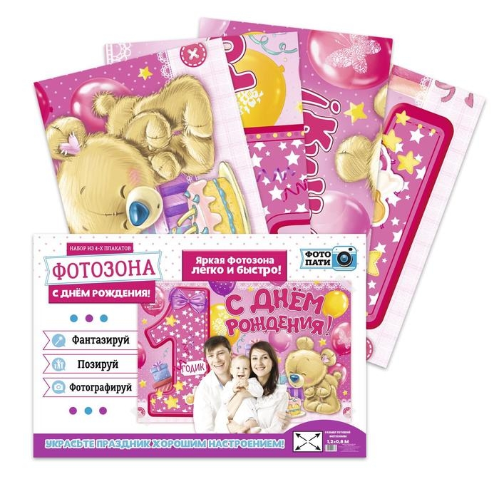 Набор из 4-х плакатов для фотозоны «1 годик», девочке, 120х80 см