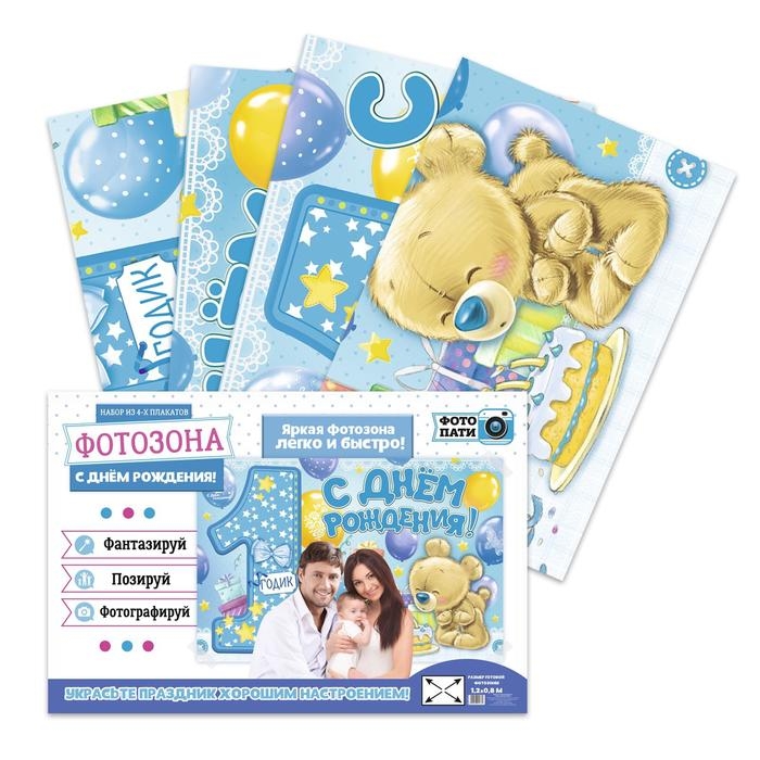 Набор из 4-х плакатов для фотозоны "1 годик", мальчику, 120х80 см