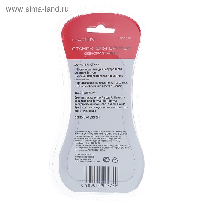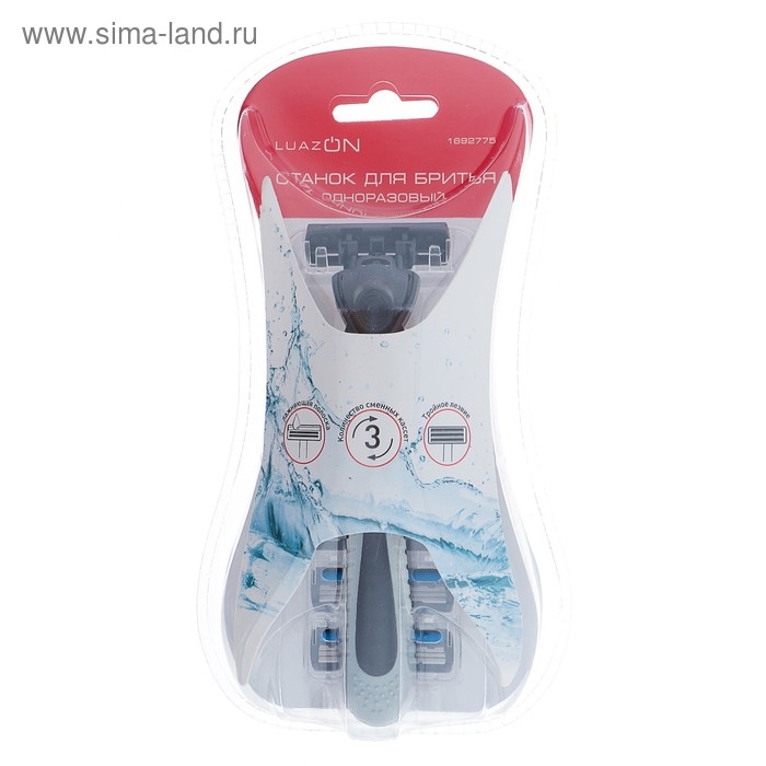 Бритвенный станок LuazON, 3 лезвия, увлажняющая полоска + 3 сменные кассеты