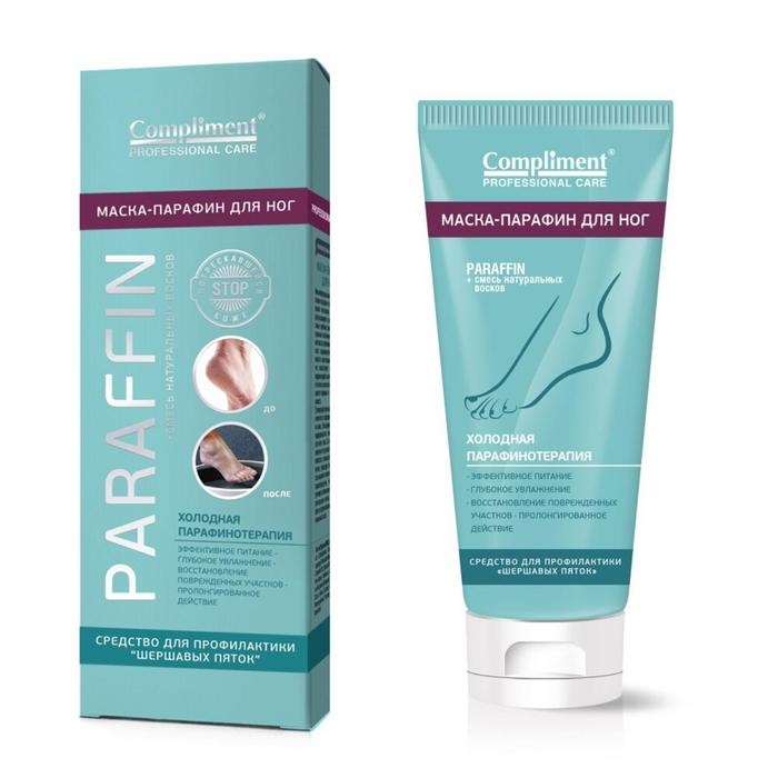 Способ применения: этап 1. Очищение. Очистите кожу в теплой воде. Для более интенсивной очистки используйте отшелушивающий скраб для ног. Этап 2. Нанесение маски-парафин. Распределите маску равномерно толстым слоем по всей ступне. Оберните ноги в полиэтиленовую пленку и оденьте хлопковые носочки. Оставьте на 20-30 минут. Этап 3. Завершающий этап. Освободите ножки от пленки, протрите их нетканой салфеткой, а остатки парафина вотрите в кожу легкими круговыми движениями.