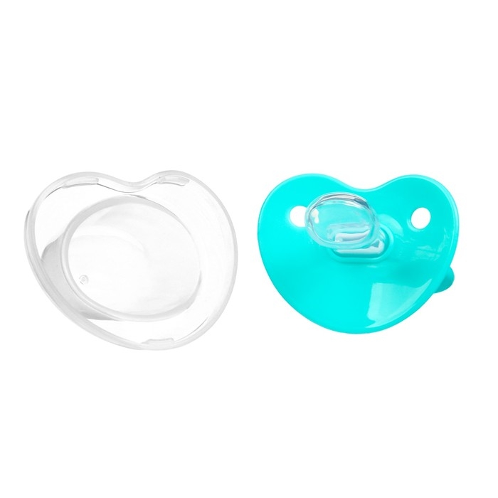 Соска-пустышка ортодонтическая, силикон, +6мес., с колпачком, цвет бирюзовый