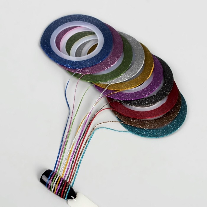 Ленты клеевые для декора ногтей «Блёстки», 10 шт, 1 мм, 10 м, цвет МИКС