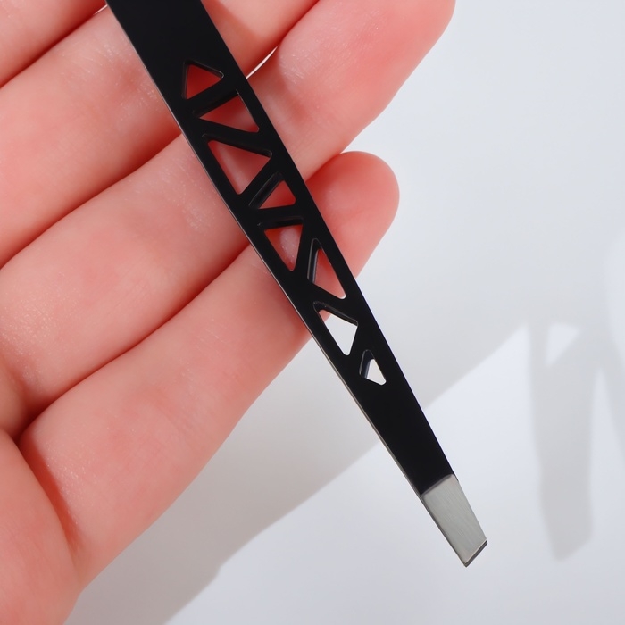 Пинцет «Геометрия», скошенный, 9,5 см, цвет чёрный