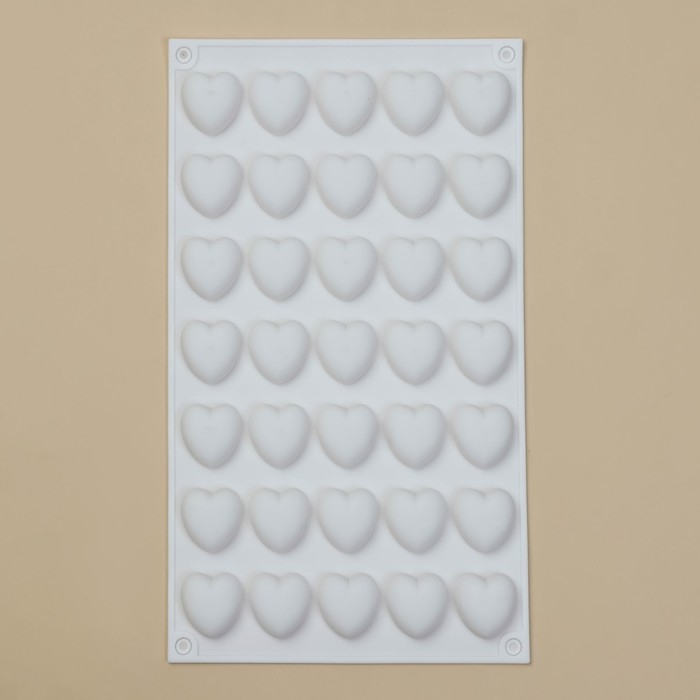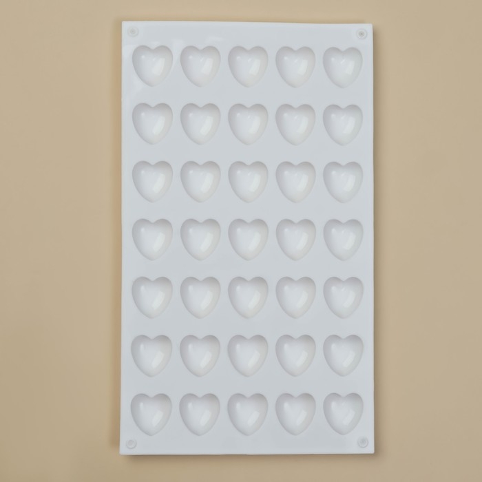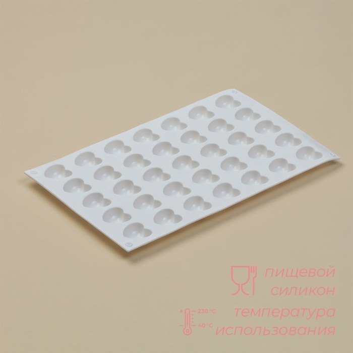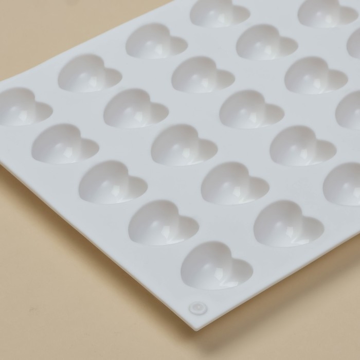Форма для муссовых десертов и шоколада KONFINETTA «Сердца», силикон, 29,7×17,3×1,5 см, 35 ячеек (2,7×2,5 см), цвет белый