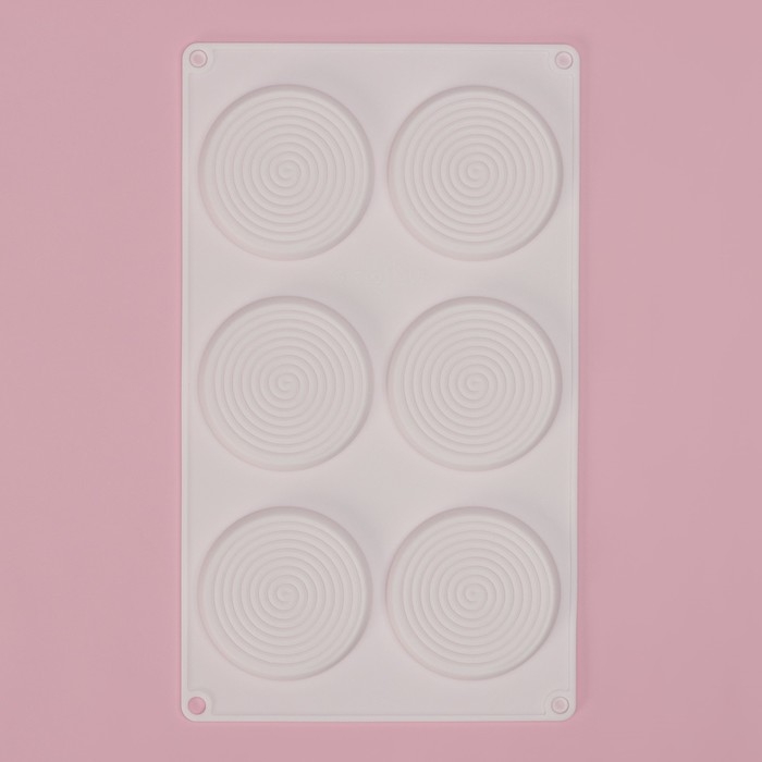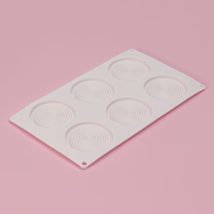 Форма для муссовых десертов и выпечки Доляна «Гипноз», силикон, 30×17,5×0,5 см, 6 ячеек (d=7,7 см), цвет белый