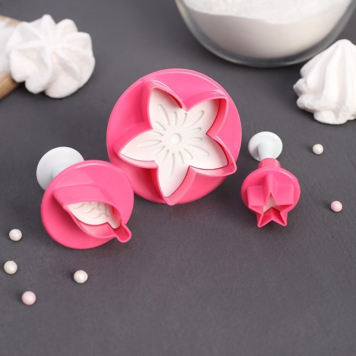 Набор плунжеров кондитерских Доляна «Цветок. Листок. Звёздочка», 3 шт