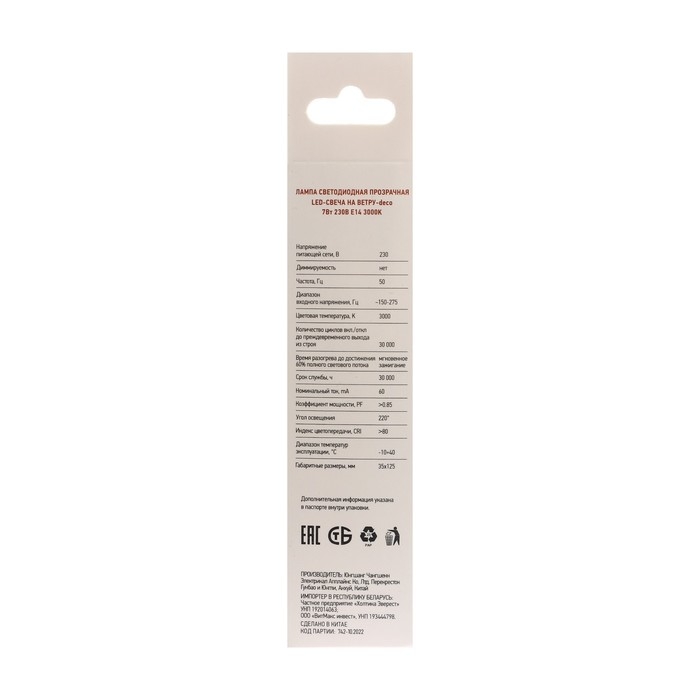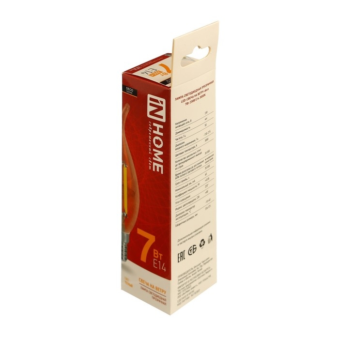 Лампа светодиодная IN HOME LED-СВЕЧА НА ВЕТРУ-deco, Е14, 7 Вт, 3000 К, 630 Лм