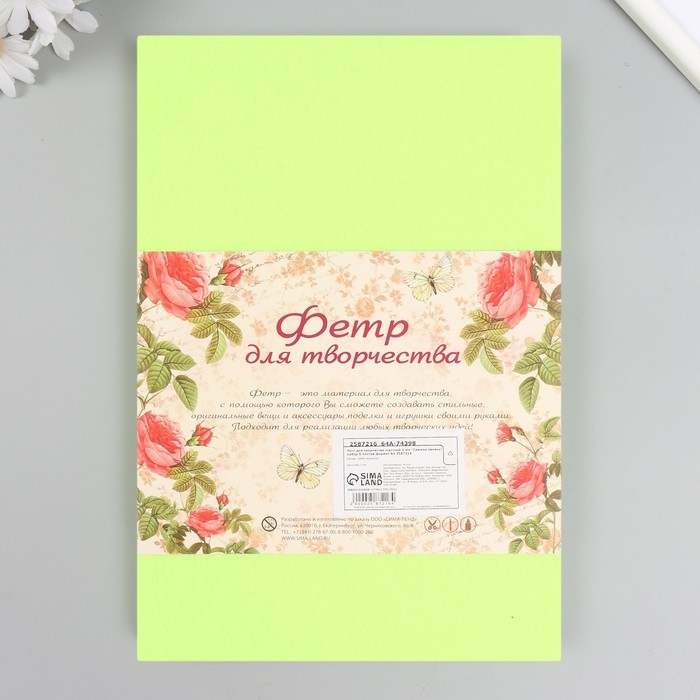 Фетр жесткий 2 мм "Свежая зелень" набор 10 листов формат А4