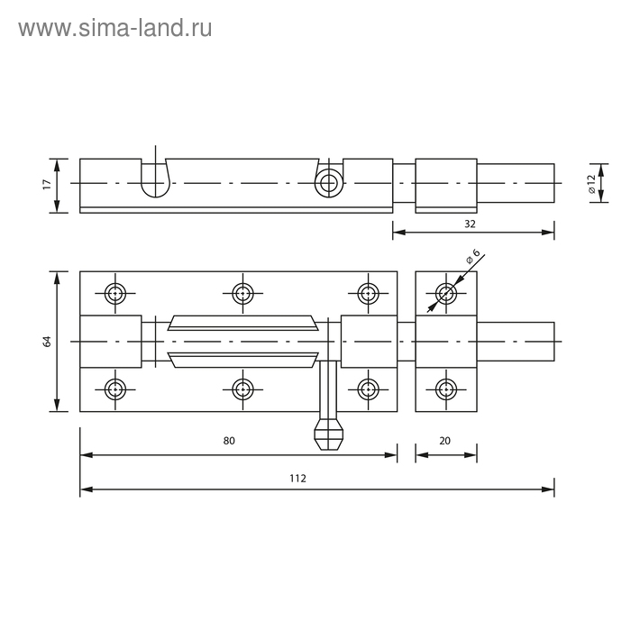 Задвижка дверная , 80 мм по основанию, оцинкованная