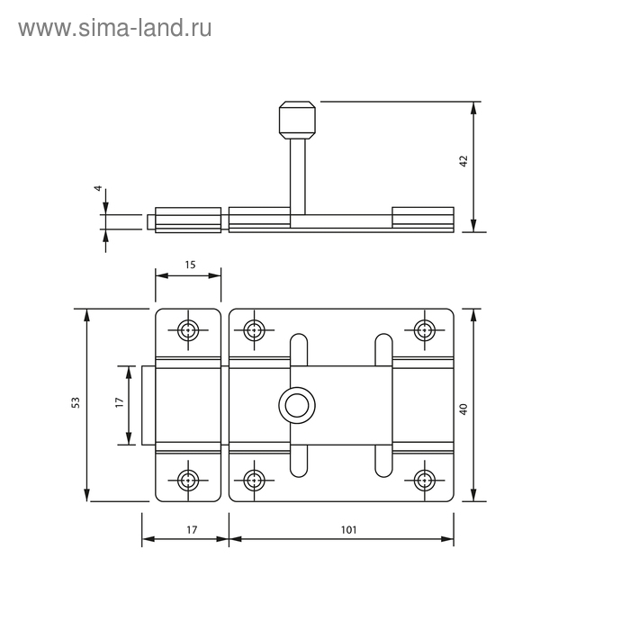 Задвижка дверная ЗД 002, 100 мм, под навесной замок, оцинкованная