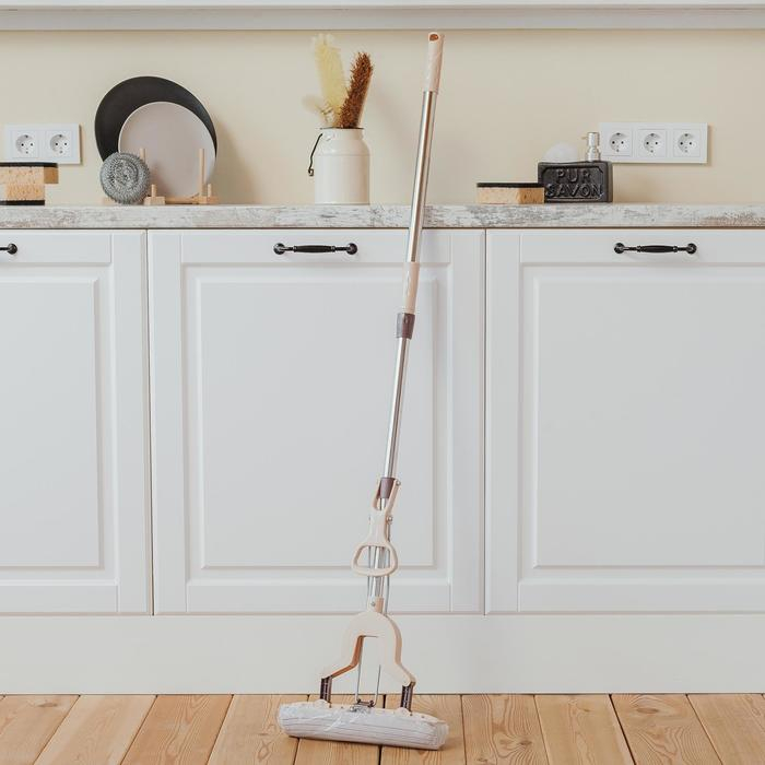 Швабра для мытья пола PVA Доляна, со складным отжимом, насадка 27×6 см, стальная составная телескопическая ручка 100(125) см