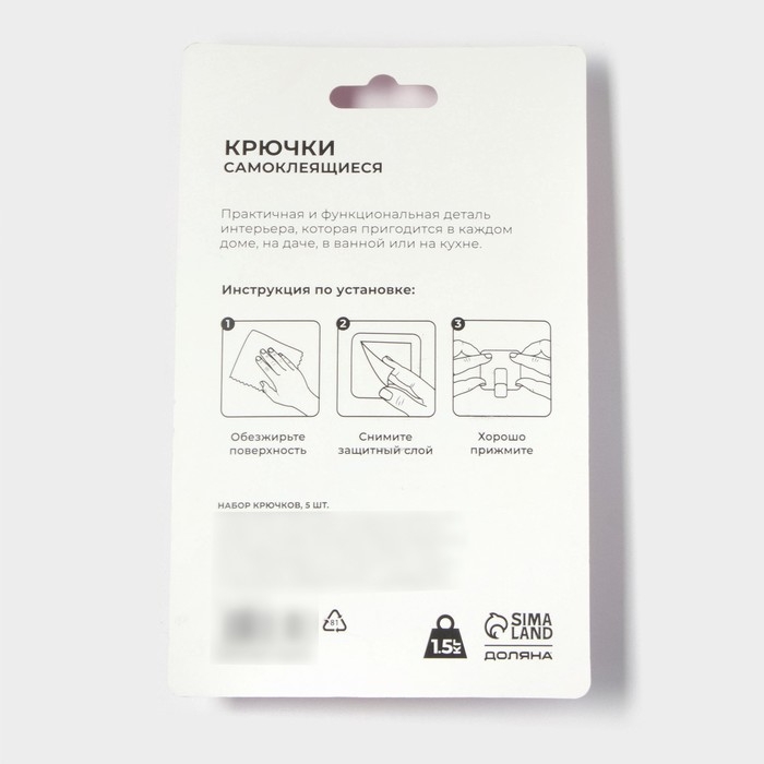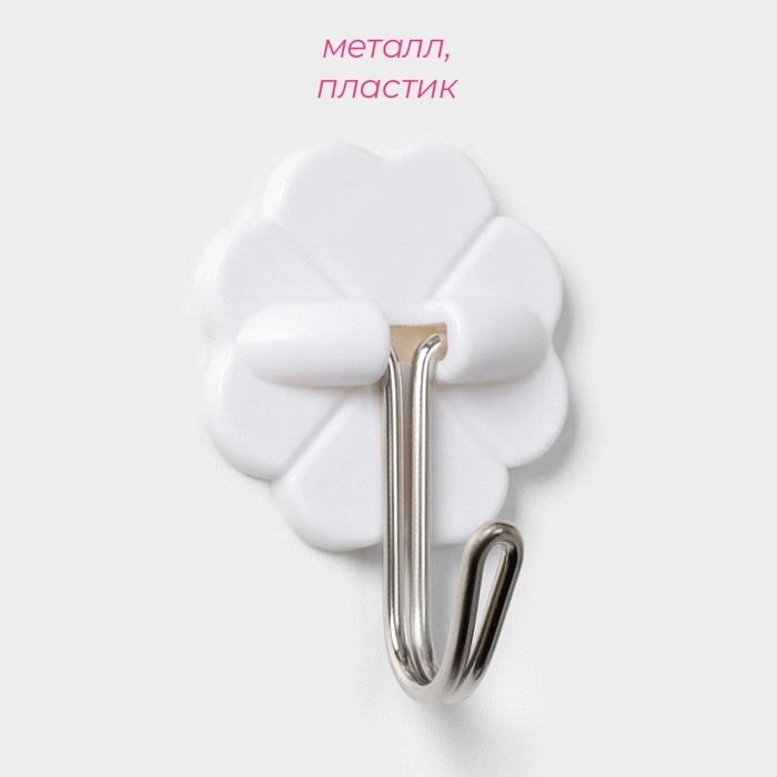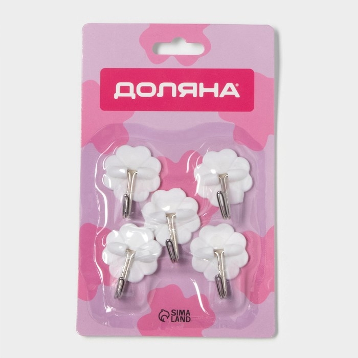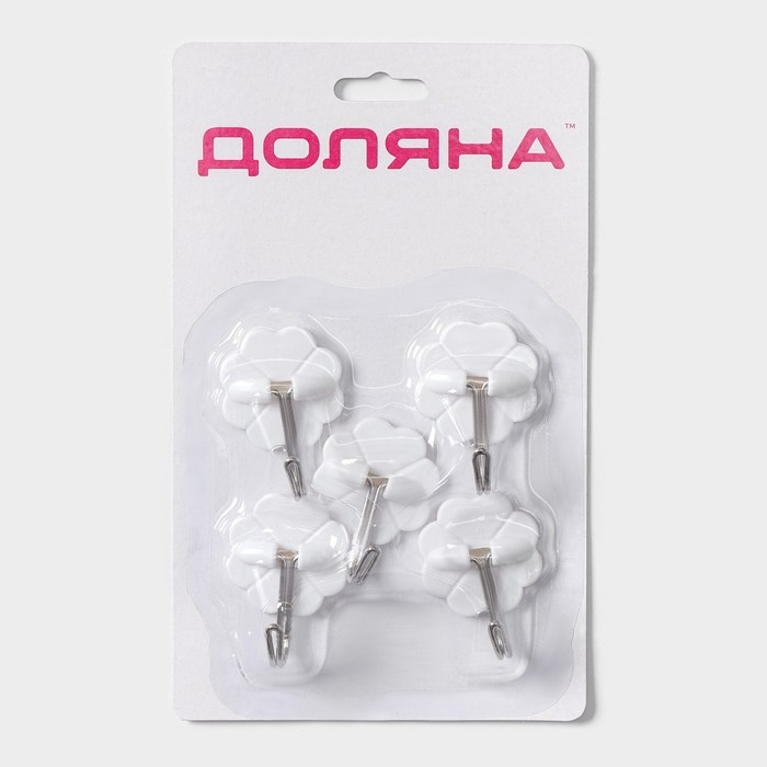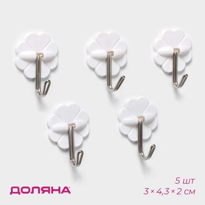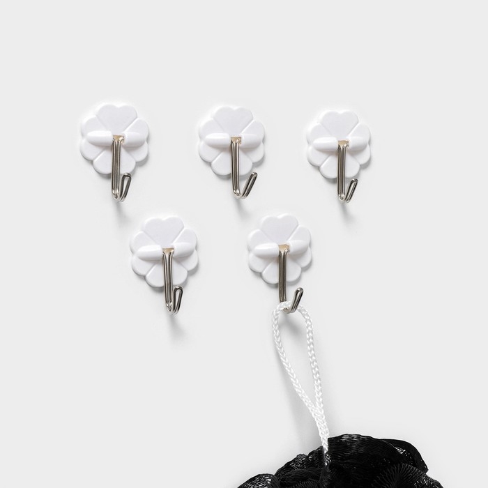 Крючки самоклеящиеся Доляна «Клевер», 5 шт, цвет белый