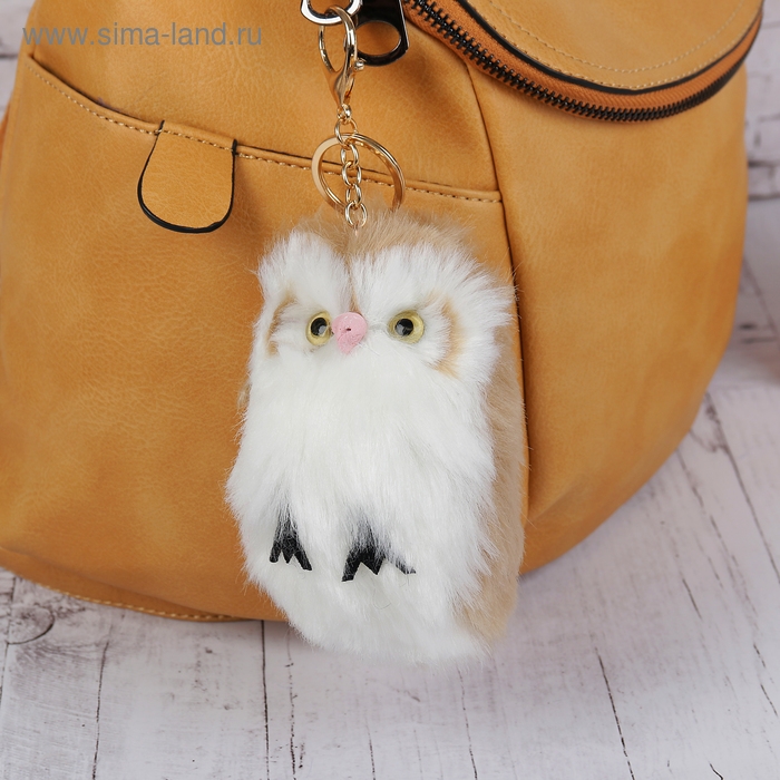 Пушистик на кольце "Совёнок" бело-песочный 15х8х8 см