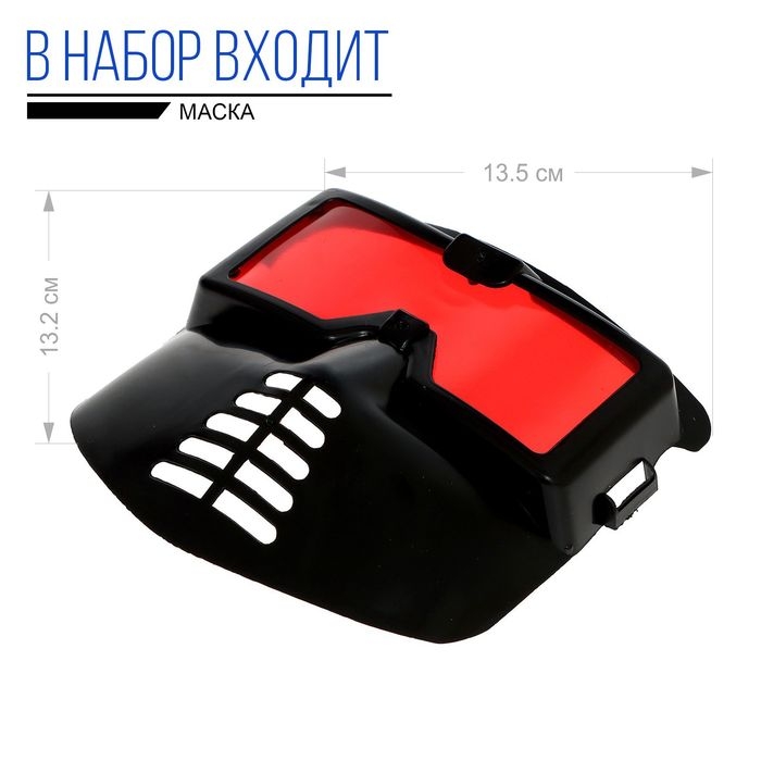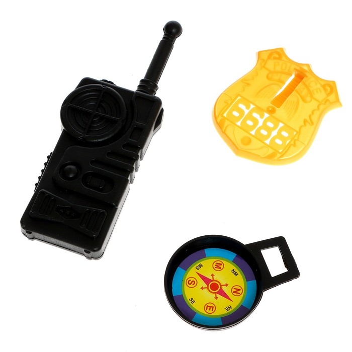 - 7 предметов в наборе: маска, рация, наручники, жетон, граната, оружие, компас.