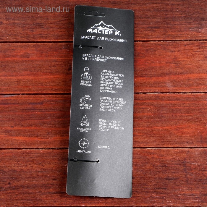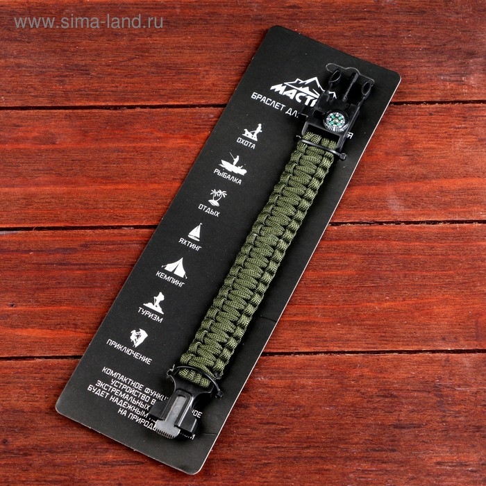 Браслет для выживания "Мастер К.", с компасом и фонариком, паракорд 3 м, 24 х 2 см
