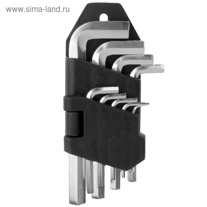 Набор состоит из 9 ключей с размерным рядом: 1.5; 2; 2.5; 3; 4; 5; 6; 8; 10.