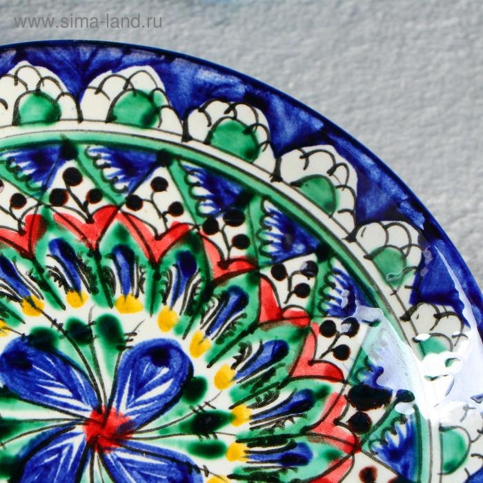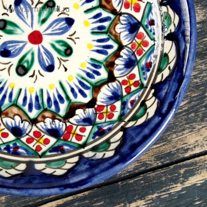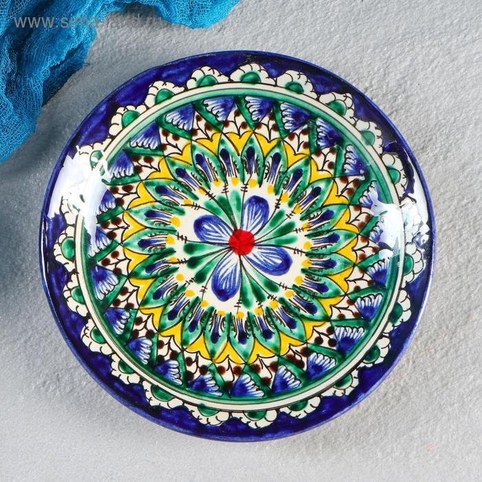 Тарелка Риштанская Керамика "Цветы", синяя, плоская, 15 см, микс
