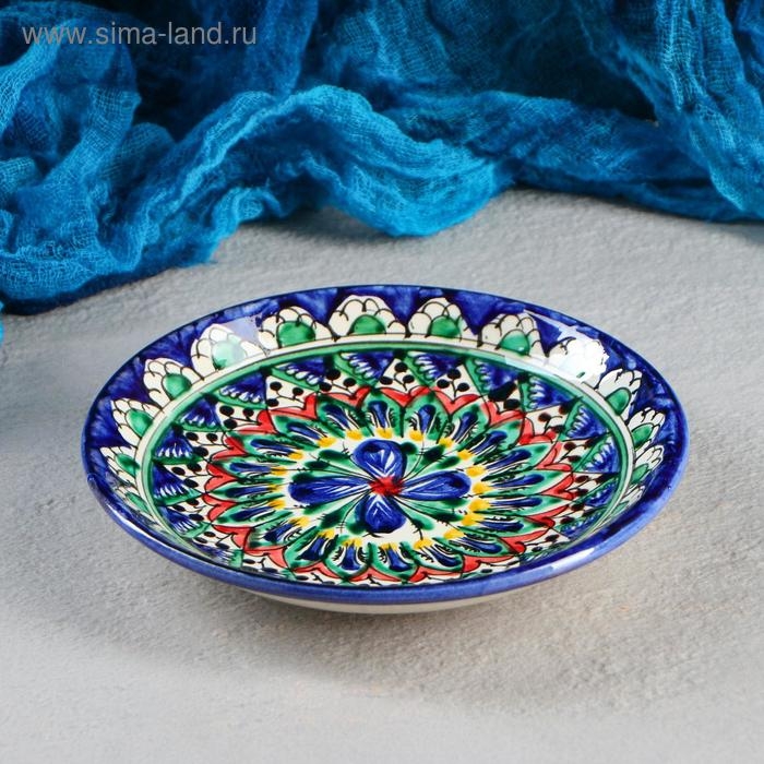 Тарелка Риштанская Керамика "Узоры", синяя, глубокая, микс, 20 см