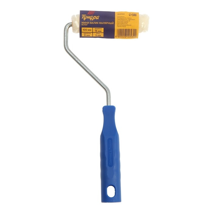 Мини-валик ТУНДРА, велюр, 100 мм, рукоятка d=6 мм, D=15 мм, ворс 5 мм