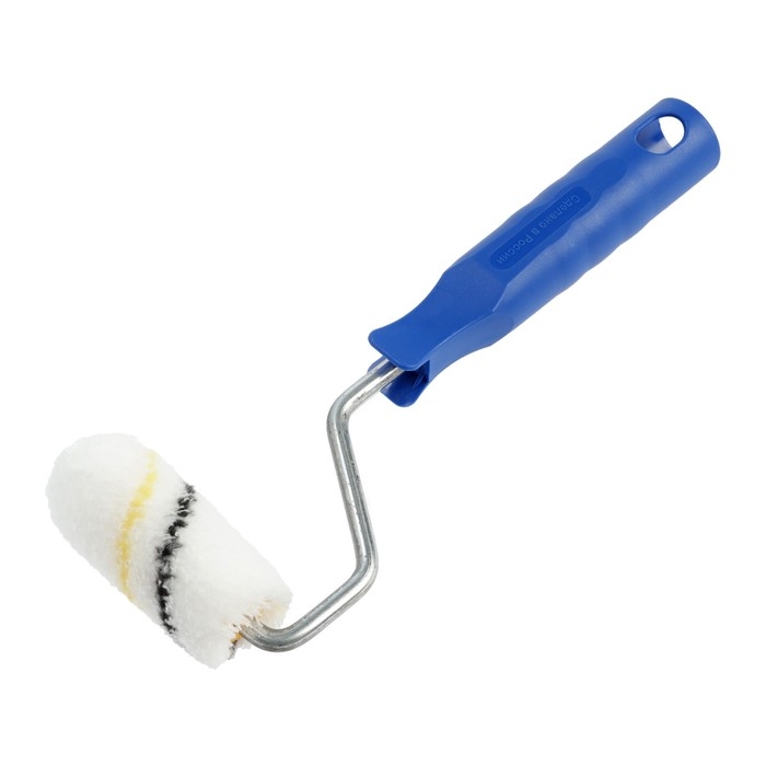 Валик состоит из пластмассового цилиндра, мягкой шубки, бугеля — изогнутого металлического стержня — и удобной пластиковой рукоятки.