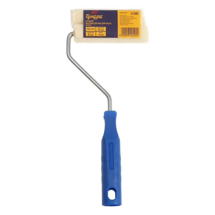 Набор ТУНДРА, велюр, рукоятка + 2 ролика 100 мм, d=6 мм, D=15 мм, ворс 5 мм