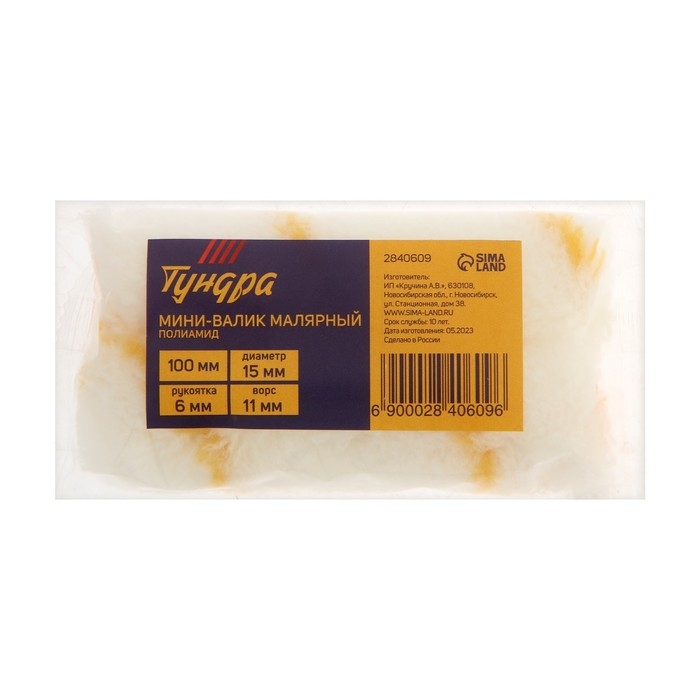 Мини-ролик ТУНДРА, полиамид, 100 мм, рукоятка d=6 мм, D=15 мм, ворс 11 мм, 2 шт.