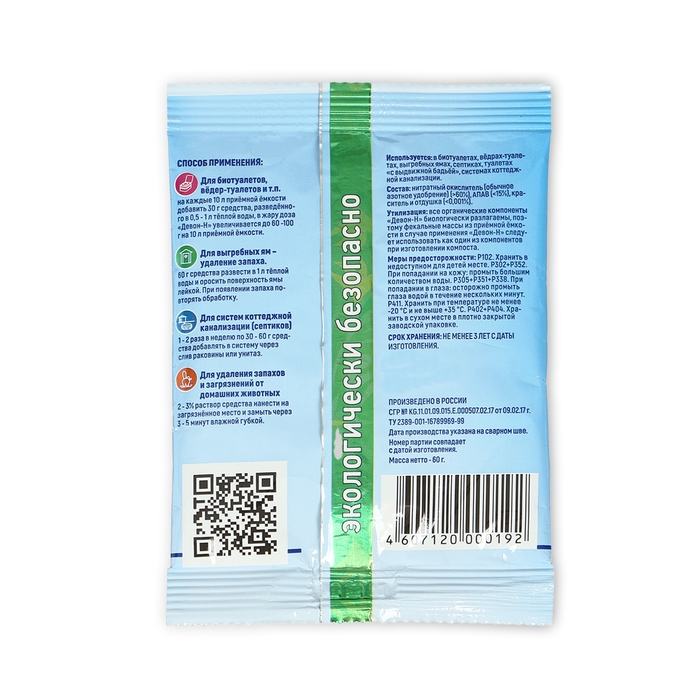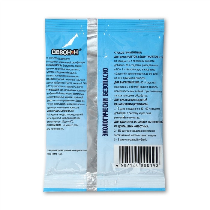 Средство «Девон-Н» в виде порошка устраняет запахи (от животных, фекальные, рвотные и т. д.). Одноразовый пакетик удобно взять с собой на дачу, даже если вы едете на общественном транспорте: он не займёт много места и не утяжелит сумку.