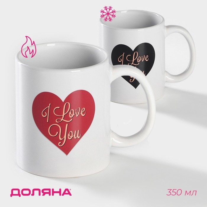 Кружка - хамелеон керамическая Доляна «Сердце», 350 мл, цвет белый