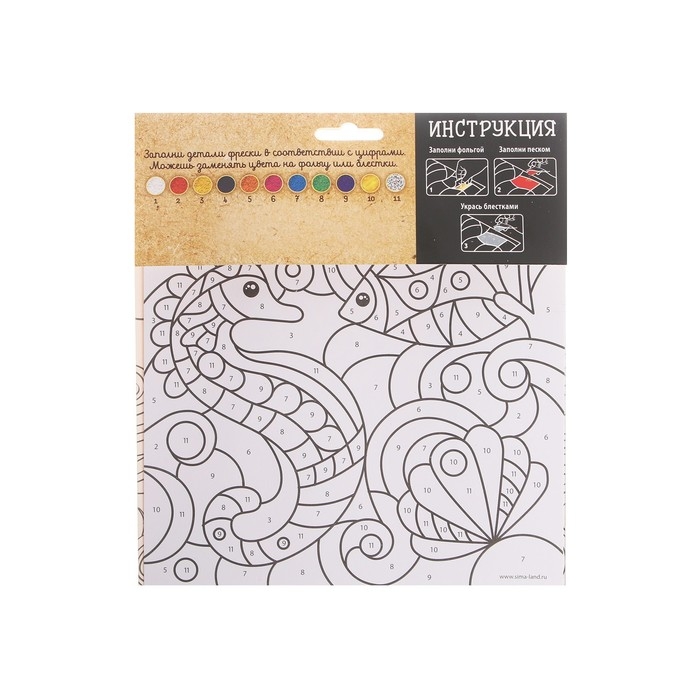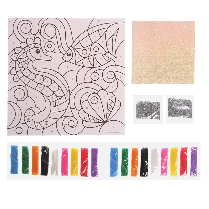 Фреска песком "Морской дуэт" + 9 цветов песка по 4 гр, блёстки, стека