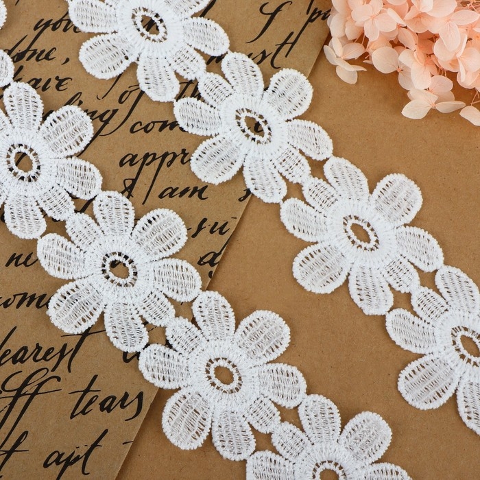 Кружево гипюровое, 55 мм × 9 ± 0,5 м, цвет белый