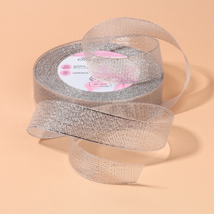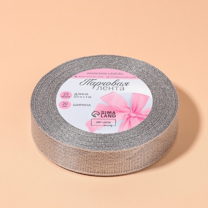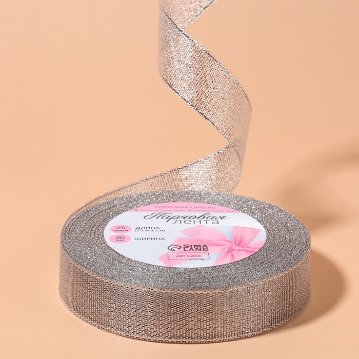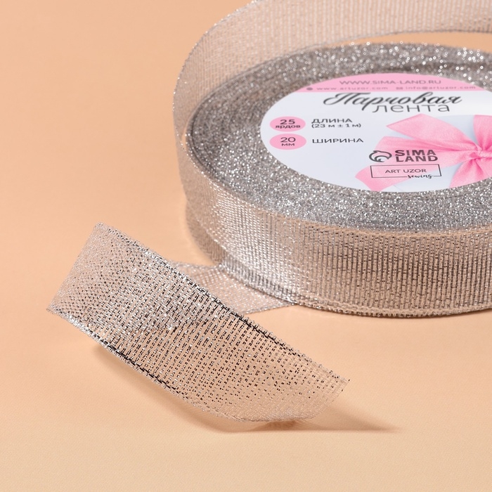 Лента парчовая, 20 мм, 23 ± 1 м, цвет серебряный
