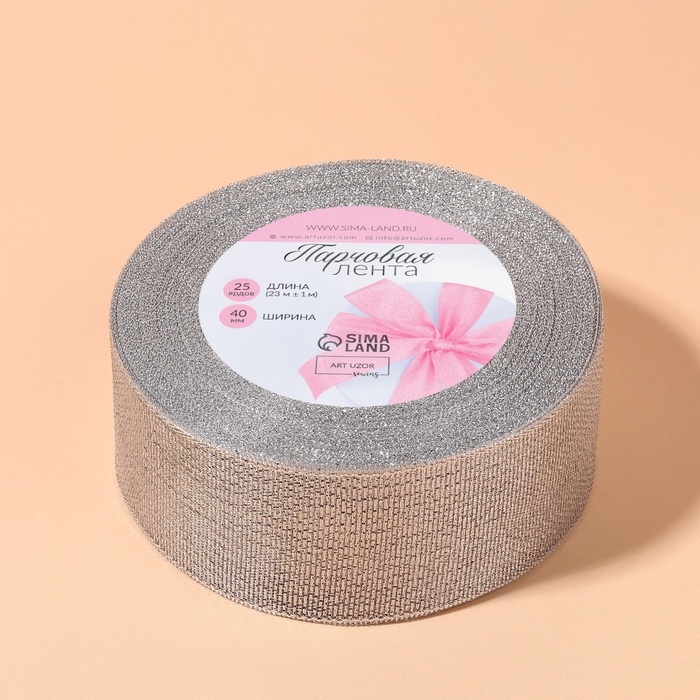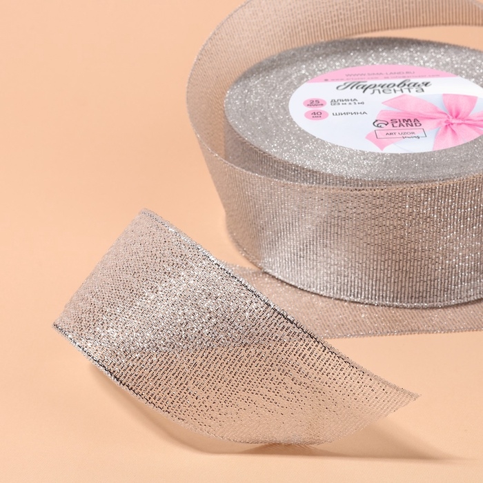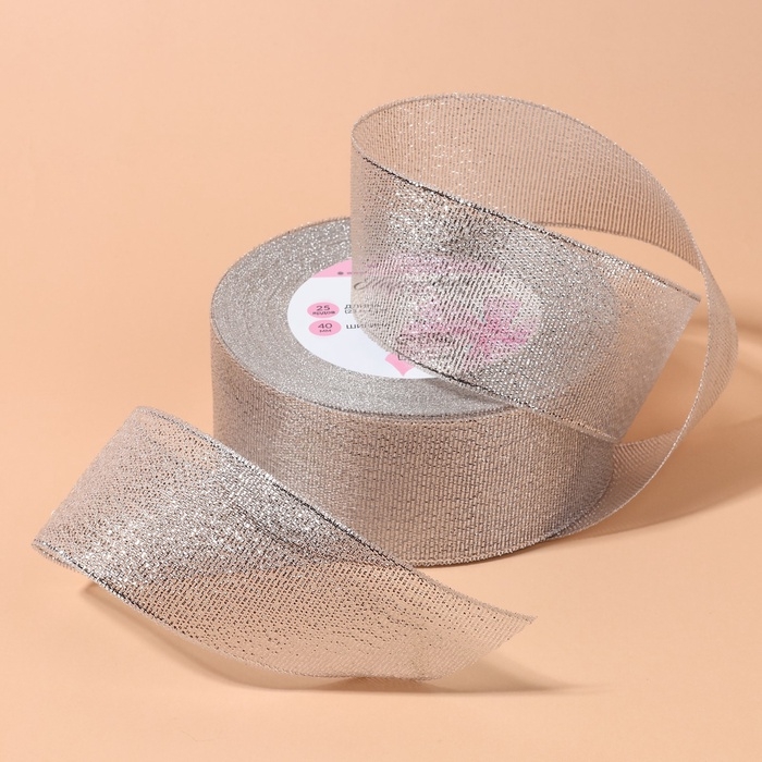 Лента парчовая, 40 мм, 23 ± 1 м, цвет серебряный