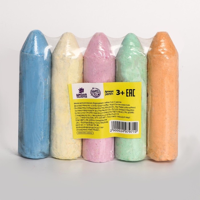 Мелки для рисования «Карандаши», набор 5 шт, 5 цветов