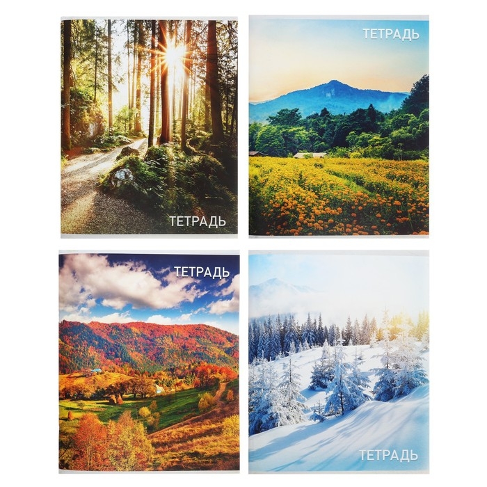 Комплект тетрадей из 5 штук (4 разные + 1 повторяющаяся), 36 листов в клетку Calligrata "Времена года", обложка мелованный картон, блок офсет