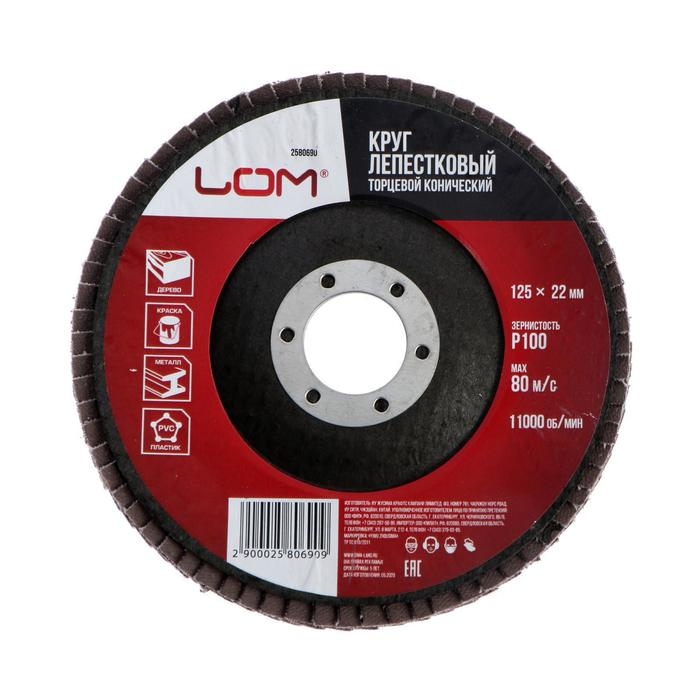 Круг лепестковый торцевой конический ЛОМ, 125 х 22 мм, Р100