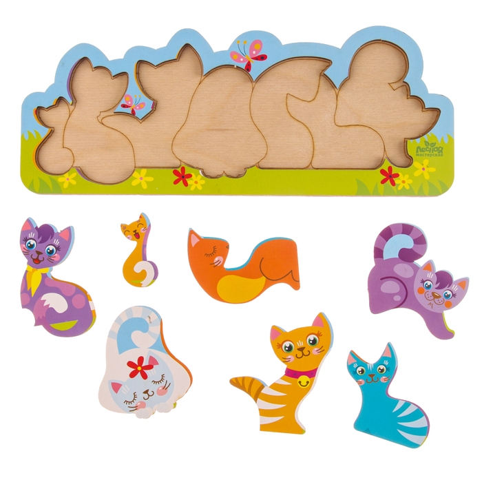 Необычная головоломка с животными сочетает в себе пазл и рамку-вкладыш. Задача крохи — правильно разместить красочные фигурки на деревянном основании, чтобы получилась цельная картинка.