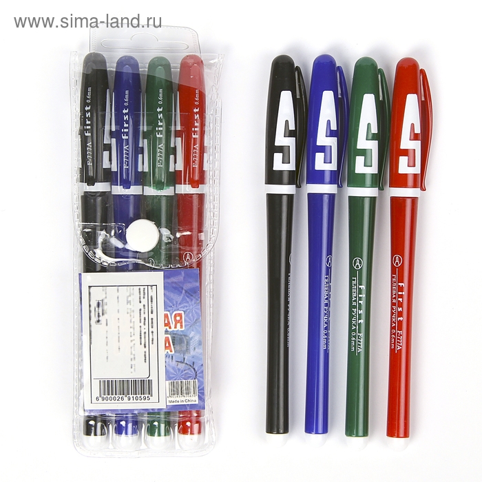 Набор гелевых ручек, 4 цвета, корпус цветной с белыми вставками, в блистере на кнопке