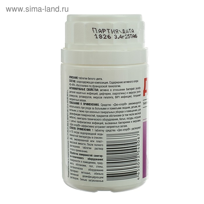 Дезинфицирующее средство «Део-Хлор» САНИТЕКА, 25 таблеток по 3,4 г