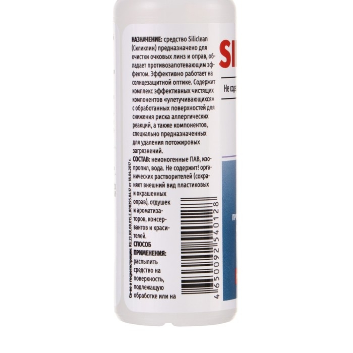 Средство предназначено для очистки очковых линз и оправ, обладает противозапотевающим эффектом. Эффективно работает на солнцезащитной оптике. Содержит комплекс эффективных чистящих компонентов улетучивающихся с обработанных поверхностей для снижения риска аллергических реакций, также компонентов, специально предназначенных для удаления потожировых загрязнений.