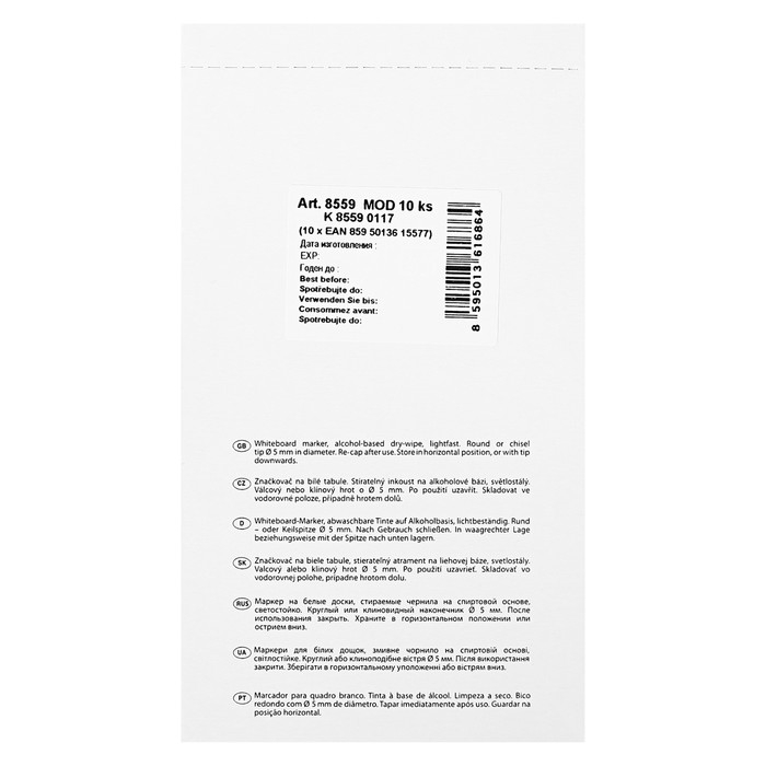Centropen 8559 — это маркер для белых сухостираемых досок и непористых поверхностей.