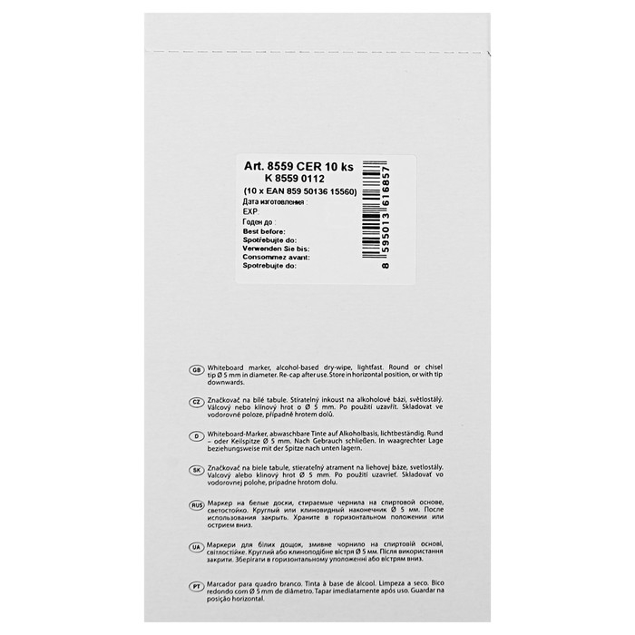 Centropen 8559 — это маркер для белых сухостираемых досок и непористых поверхностей.