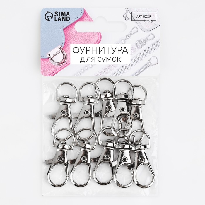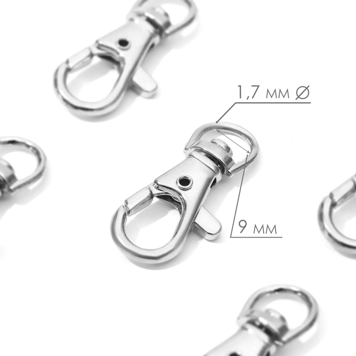 Карабин металлический, 37 × 12 мм / 9 × 1,7 мм, 10 шт, цвет серебряный