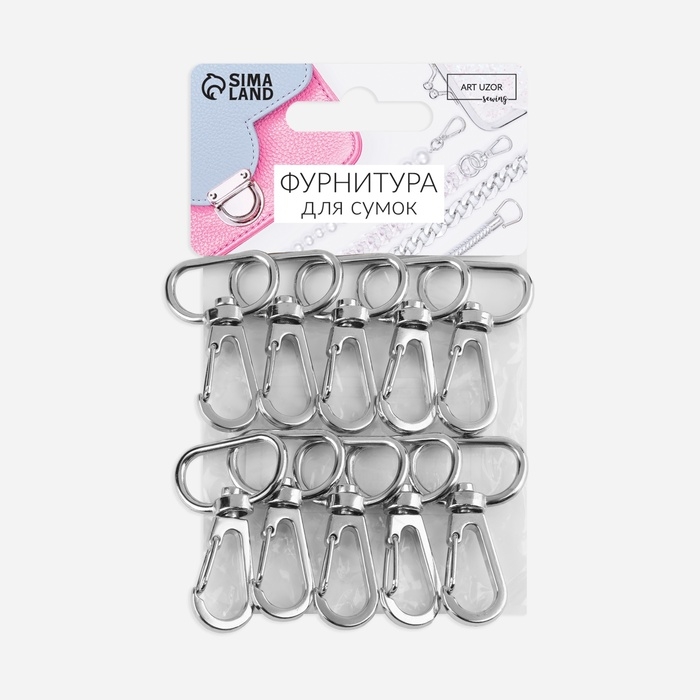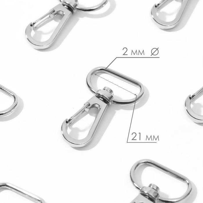 Карабин металлический, 40 × 25 мм / 21 × 2 мм, 10 шт, цвет серебряный