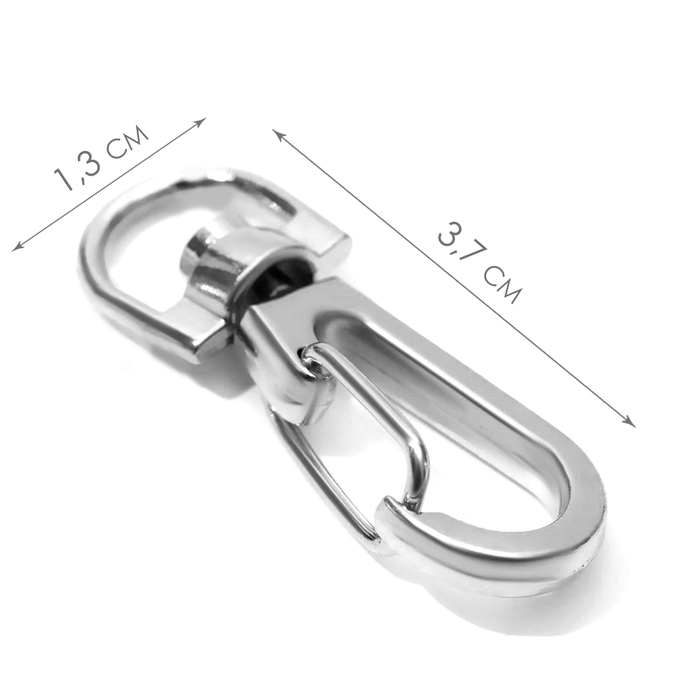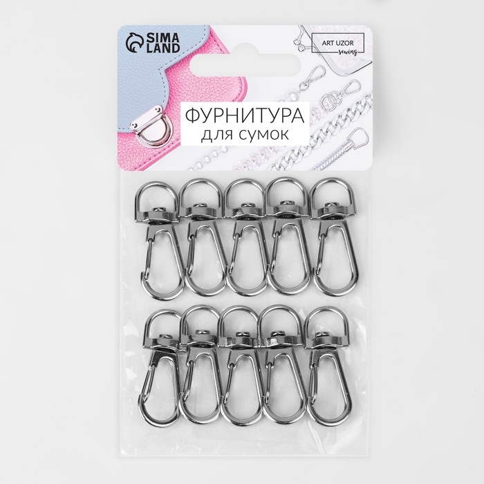 Карабин металлический, 37 × 13 мм / 10 × 2 мм, 10 шт, цвет серебряный