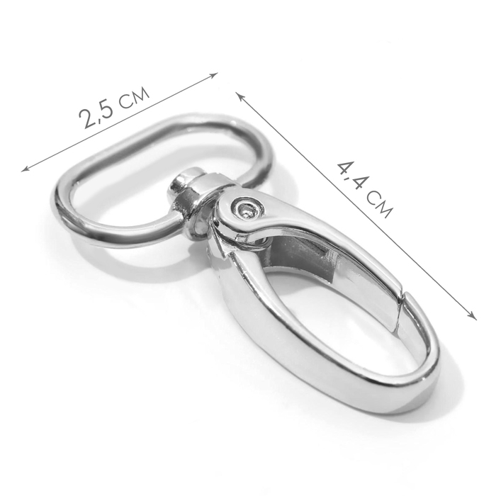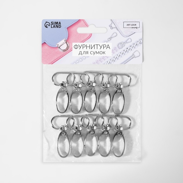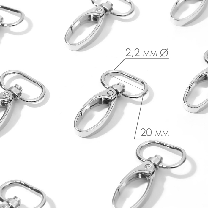 Карабин металлический, 44 × 25 мм / 20 × 2,2 мм, 10 шт, цвет серебряный