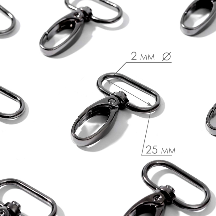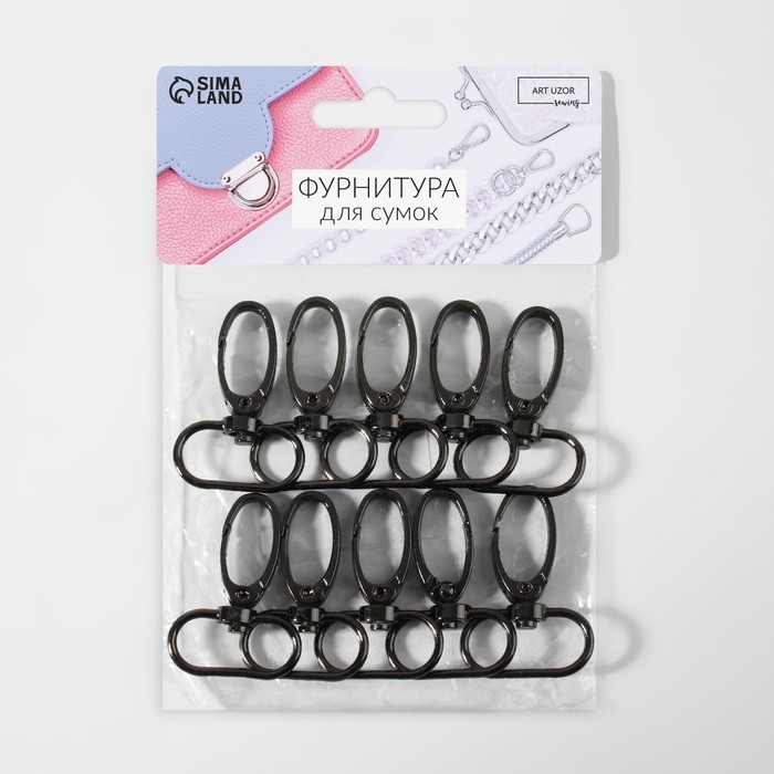 Карабин металлический, 45 × 30 мм / 25 × 2 мм, 10 шт, цвет чёрный
