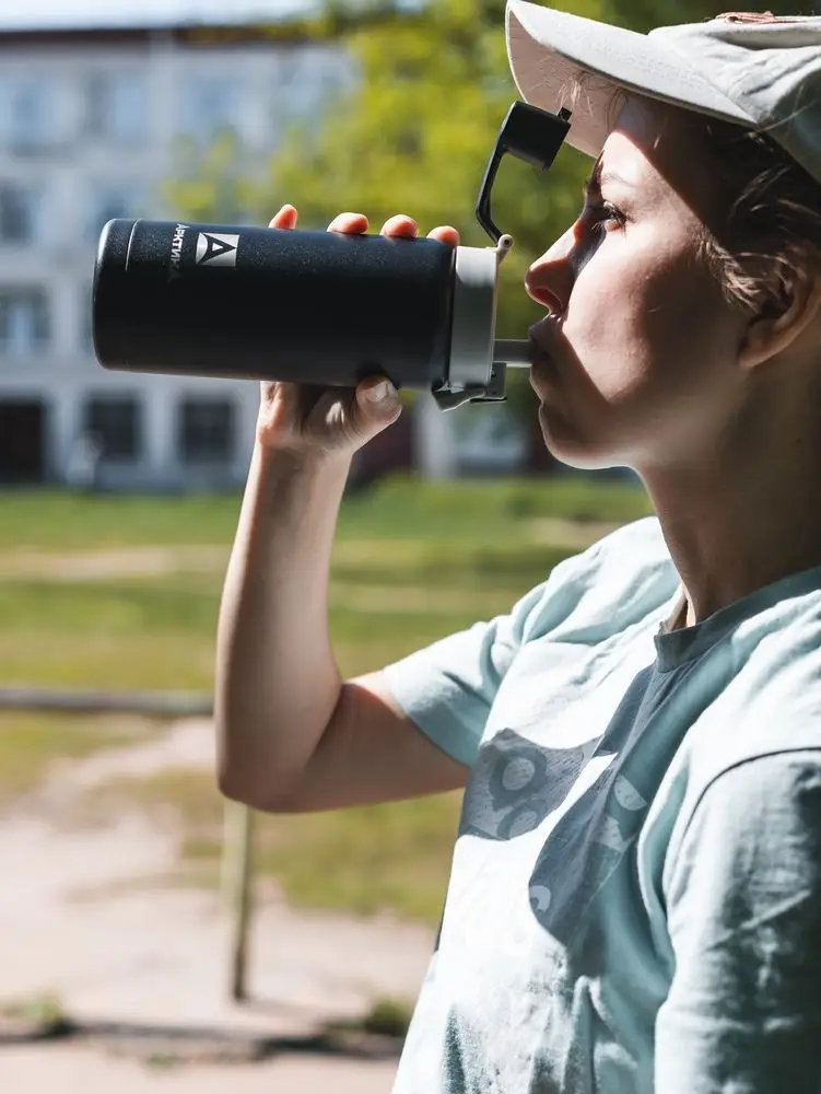 - Благодаря питьевой системе с носиком-поильником термостакан легко открыть, нажав на кнопку, и пить во время движения