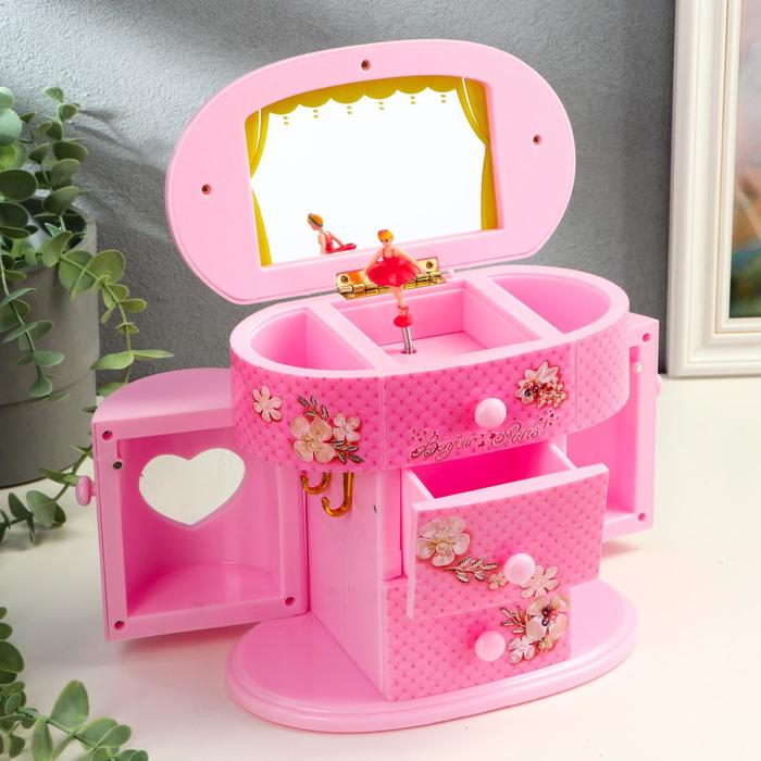 Шкатулка музыкальная механическая "Комод принцессы" розовая 17,5.20х11 см