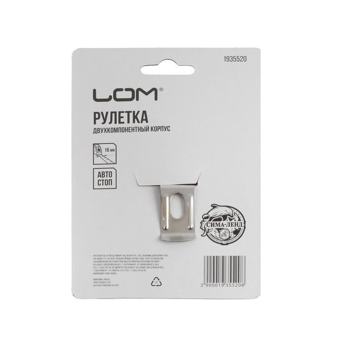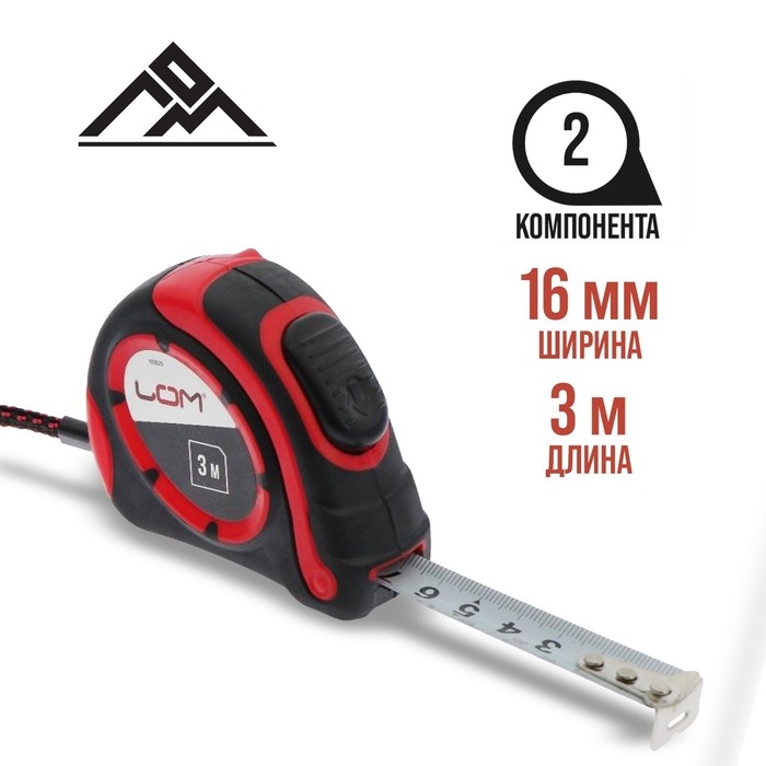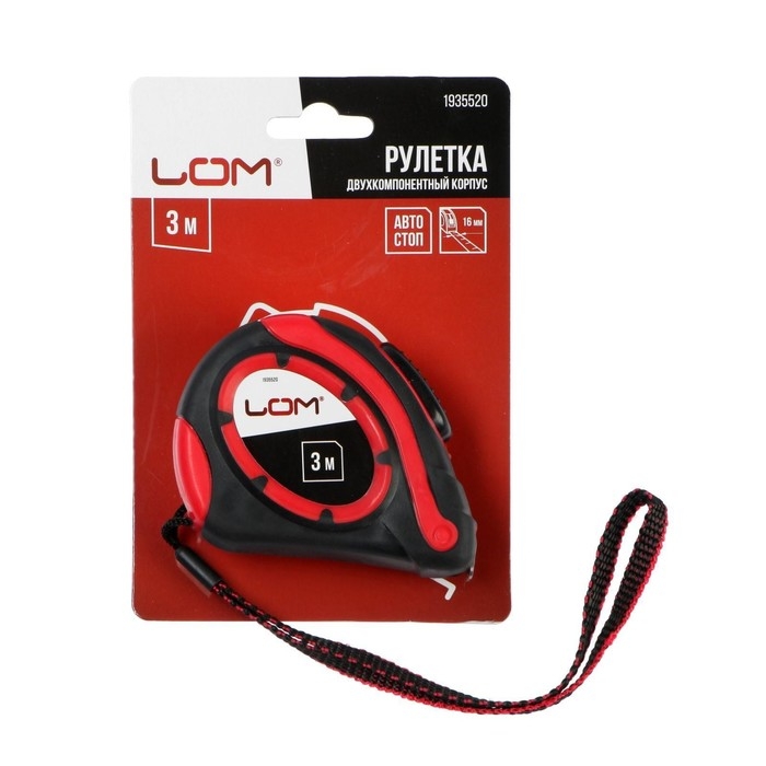 Рулетка ЛОМ, двухкомпонентный корпус, автостоп, 3 м х 16 мм